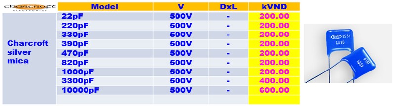 Charcroft Silver Mica 500V capacitors, Made in UK