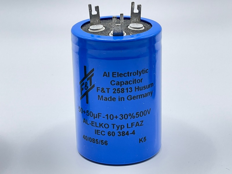 Here we have F&Ts dual section radial capacitor with solder tag connections. With a specification far exceeding comparable products these gems are heavily used in the Audio industry such as Orange Amplification. F&T dual sections LFAZ range are the benchmark for vintage restorations and vintage new-builds alike. Ideal for valve amplifiers and radios.