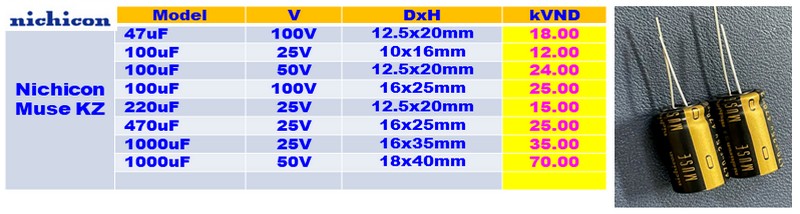 The best caps made by Nichicon - Muse KZ are very popular used in hi-end audio products